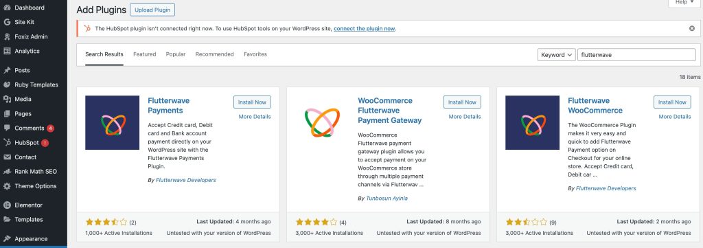 Noted: if you are from Nigeria or other parts of Africa, you can add Paystack or Flutterwave Plugin by clicking on ‘Add New Plugin’ and search.